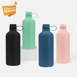 Cilindro metálico de una pared. Incluye tapa de plástico con sistema de rosca que asegura un cierre hermético. Adicional, su misma tapa incluye asa de silicón, que te permite llevarlo fácilmente a todas partes. Capacidad de 27 Oz. Incluye caja individual.