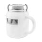 Taza tarro de cerámica con placa metálica para impresión. Tapa de rosca de plástico con recubrimiento metalizado. Terminado mate. Incluye caja individual.