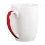 Taza de cerámica blanca con asa de color. Venta caja cerrada de 36 piezas.