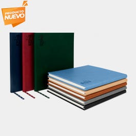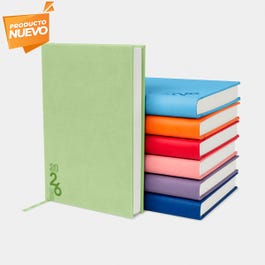 Agenda diaria con 186 hojas. Contiene datos personales, calendarios 2025-2026-2027, planeador 2026, seguimiento de nuevos hábitos, organizador de tareas, planeador de proyectos y días festivos. Incluye caja individual del mismo color a la agenda.