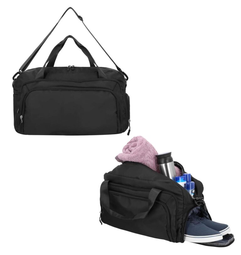 Maleta con asas, zapatera, 1 compartimento principal, 1 compartimento frontal y cierres.