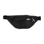 Cangurera deportiva con 3 compartimentos (2 delanteros y uno trasero) y cinturón ajustable.