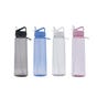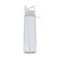Tapa con cierre de rosca, asa y boquilla plegable para beber. Incluye popote y aro de silicón para colgar toalla, llaves etc. Caja individual incluida.