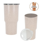 Termo de RPET de doble pared con tapa hehca a base de caña que cierra a presión.