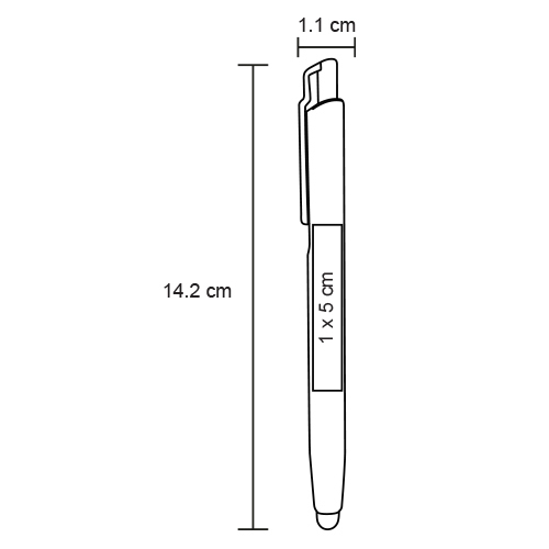 Bolígrafo con etiqueta NFC integrada que puede contener un enlace y es compatible con todos los teléfonos inteligentes NFC. Incluye goma touch screen.