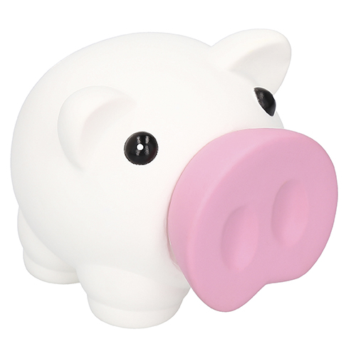 Alcancía en forma de cerdito con nariz removible.