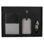 Incluye porta pasaporte, identificador de maleta con papel para datos y báscula con display digital con capacidad máxima de 40 Kg (unidades de peso: Kg y lb) y caja de regalo.
