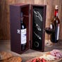 Incluye sacacorchos con navaja y destapador, stopper, boquilla, arillo y estuche con espacio para almacenar una botella (no incluida).