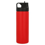 Termo de acero inoxidable de doble pared insulado al vacío con acabado rugoso, su tapa enroscable cuenta con una agarradera, boquilla abatible y popote.