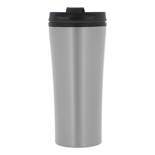 Termo de doble pared con interior de plástico, tapa enroscable y válvula de seguridad.